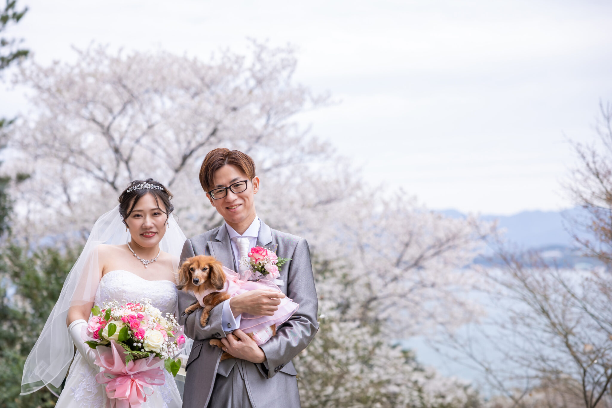 フォトウエディング+お食事会の新郎新婦様。 愛犬はダックスのももえさん。お食事会はご家族・ご親族・ご友人を含めて約20名です。 満開の桜を背景に、愛犬と撮影。愛犬のももえさんは、屋外ドッグランで軽快に走っていました。 お … 続きを読む 愛犬とフォトウエディング&お食事会