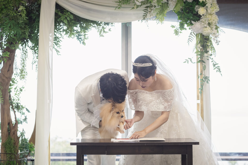 ブライズルームには愛犬たわちゃんの姿もあります。