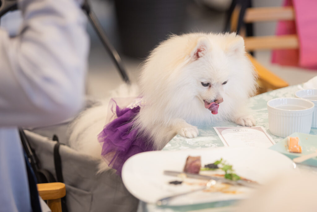 わんちゃん達も同じ会場内でお食事を楽しみます。